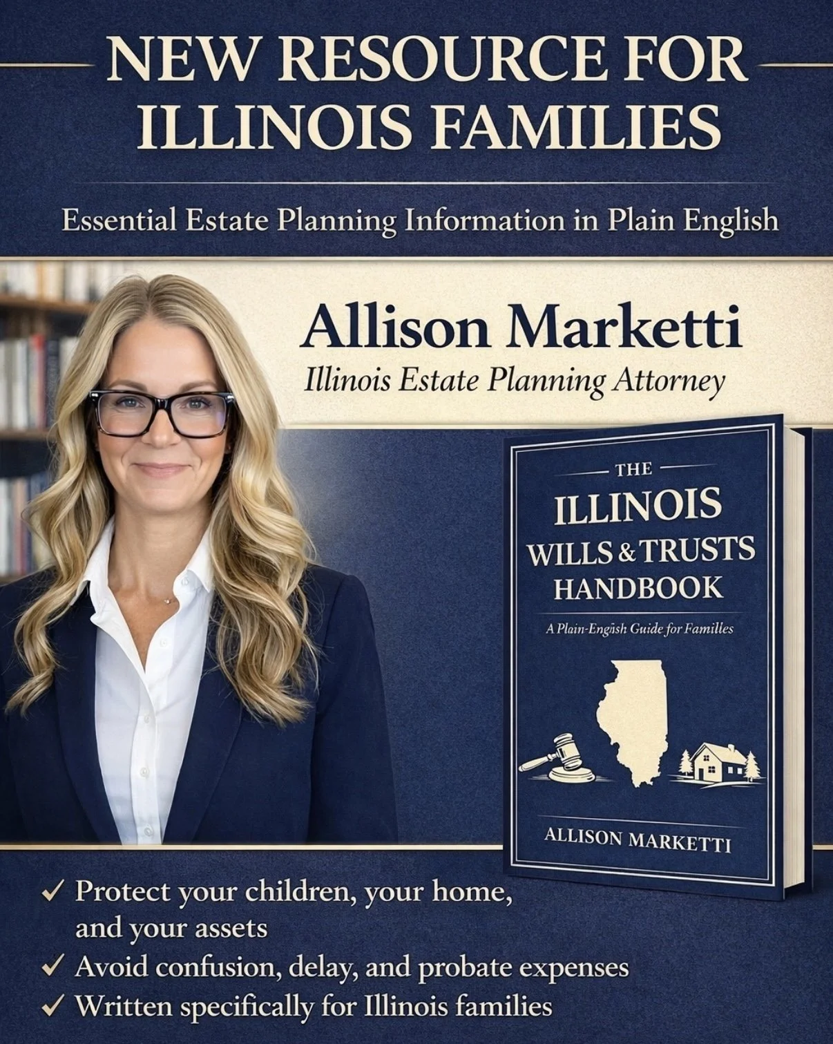To help local families further Attorney Allison Marketti wrote the book on Illinois Wills and Trusts. It is available through Amazon for purchase.