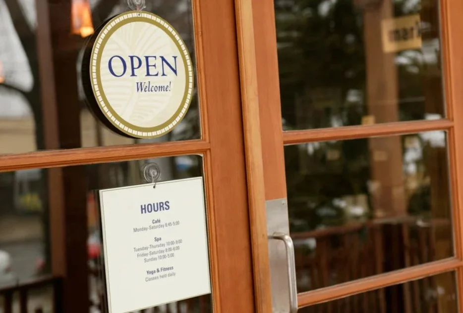 Small business storefront with “Open” sign—Marketti Law Firm helps Illinois, small businesses with contracts, leases, and legal protections.